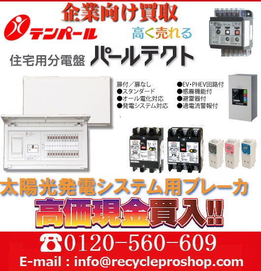 低圧遮断器買取専門店リサイクルプロショップは不要になった配線用遮断器、漏電遮断器、直流高電圧対応ノーヒューズ遮断器/ノーヒューズスイッチ、漏電アラーム遮断器/漏洩電流表示付遮断器、単相3線回路専用遮断器、UL登録品、MDUブレーカ、用途別遮断器/特殊環境用遮断器、分電盤用遮断器・制御盤用遮断器、機器用遮断器、低圧気中遮断器、漏電リレー、付属装置・関連機器といった様々な遮断器、ブレーカーを高く売りたい方におすすめの遮断器買取専門店です。現場にて変更となり余ってしまった商品、発注ミスによる商品、倉庫・在庫をあけて早期現金化したい商品、等々の理由で処分したい低圧遮断器を無料で査定し高価買取!出張・宅配・店頭買取の3つで全国対応です。