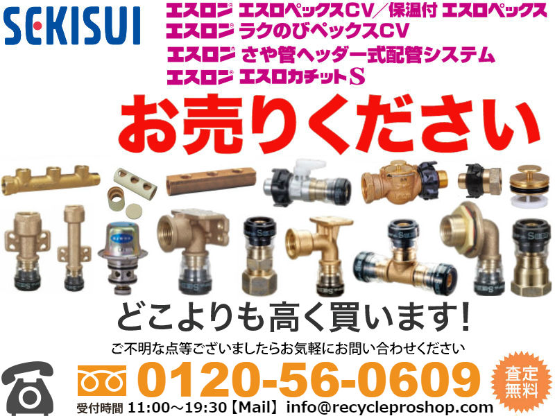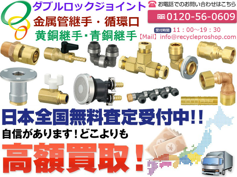 ねじ込み式可鍛鋳鉄製管継手、ねじ込み式管継手、ねじ込み式管継手、PL継手、ステンレス鋼管用ねじ込み式管継手、ステンレス鋼製ねじ込み管継手、ステンレス鋼製ねじ込み管継手、ねじ込み式鋼管製管継手、パイプニップル、ねじ込み式ステンレス鋼管製管継手、SUSパイプニップル、樹脂コーティング管継手(ねじ込み式鋼管製管継手)、PLパイプニップル、水道用ライニング鋼管用ねじ込み式管端防食管継手、兼用形コア継手、青銅製コア継手、異種金属接触防止形コア継手、ねじ込み式管端防食フランジ、管端防食U字管、ねじ込み式フランジ、ダクタイル製ねじ込み式フランジ、給水用メカニカル継手、NWジョイント、給水・給湯用ポリブテン管、ポリブテン管、パイプ、H種、H種R型、E種、M種、脂管(ポリブテン管・架橋ポリエチレン管)用、Jワンクイック2、ねじ部シール剤塗布済みねじ込み式可鍛鋳鉄管継手、PS継手、一般配管用ステンレス鋼管用ワンタッチ継手、サスロックプラス買取りしております。