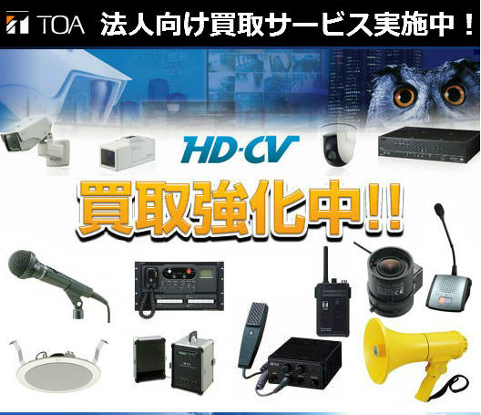 リサイクルプロショップではTOA株式会社の屋外ドームカメラ一体型レコーダー、HD-SDI防犯カメラシステム、ネットワークカメラシステム、アナログカメラシステム、音声ネットワーク機器、テレコム機器、メガホン、移動用ポータブルアンプシステム、卓上アンプ、設備用PAアンプシステム、車載用PAアンプ、車載用ホーンスピーカー、ワイヤレス機器、非常用・業務用放送設備、会議・議場用システム、学校向けAVシステム、マイクロホン、スタンド、接続ケーブル、レクチュアアンプ、天井・壁掛型・ホーン・体育館・特殊スピーカー、音量調節器、BGM、サウンド用スピーカー、ミキサー、プロセッサー、イコライザー、アンプ、プレーヤー、音声ファイルほか周辺機器買取りしております。