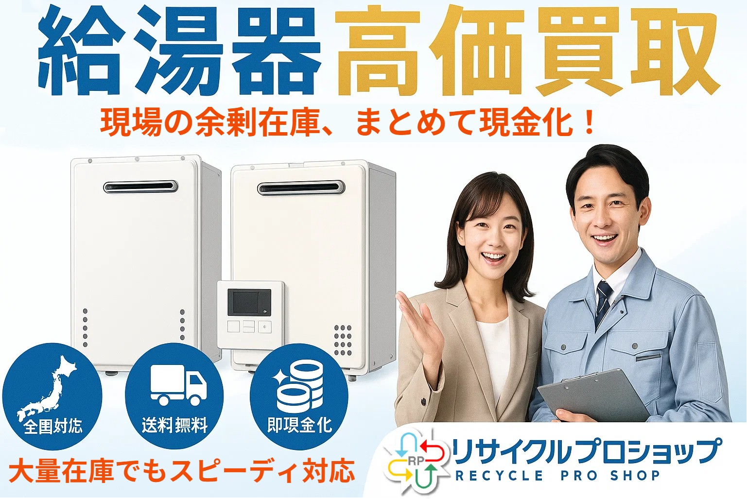 リサイクルプロショップでは、工務店・リフォーム業者様、設備施工会社様、住宅設備・建材の卸業者様向けに、余剰在庫・未使用品の給湯器を高価買取中です。