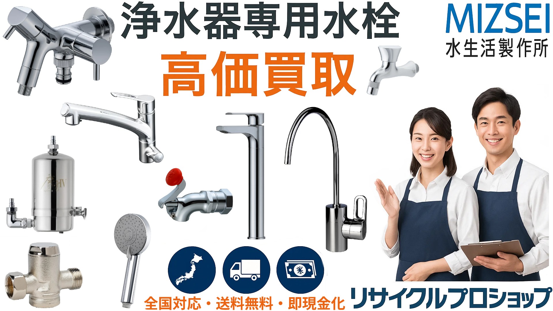 リサイクルプロショップでは、MIZSEI製の浄水器専用水栓や浄水器兼用混合水栓をはじめ、アルカリイオン整水器専用水栓まで幅広く高価買取しております。