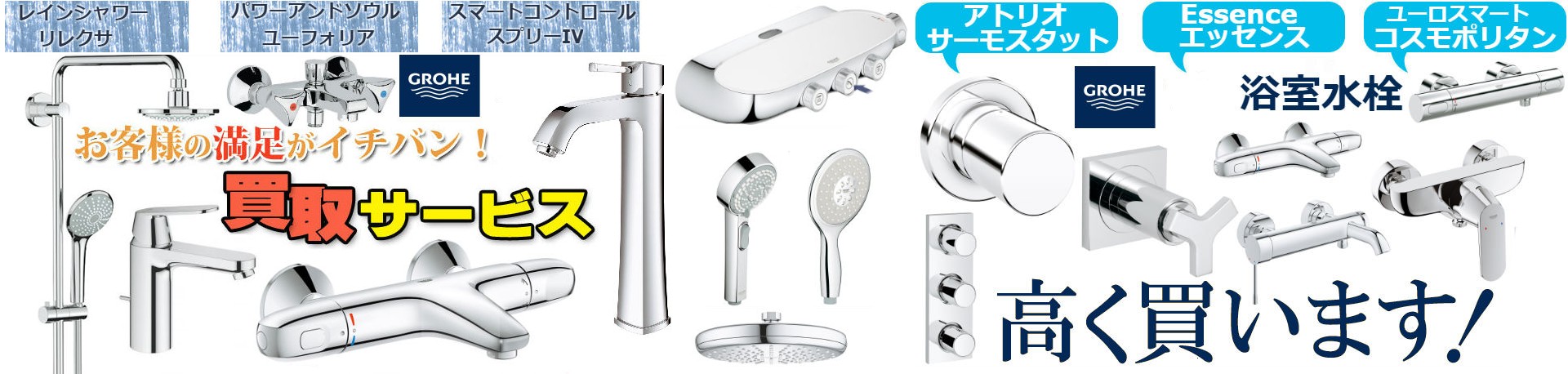 個人様の余剰在庫から、工務店・リフォーム業者様、住宅設備関連の法人様まで、どなたでもお気軽にご利用いただけます。 GROHE(グローエ)の水栓・シャワー製品を高く売るなら今がチャンス! ぜひ「水栓金具買取サービス」にご相談ください。